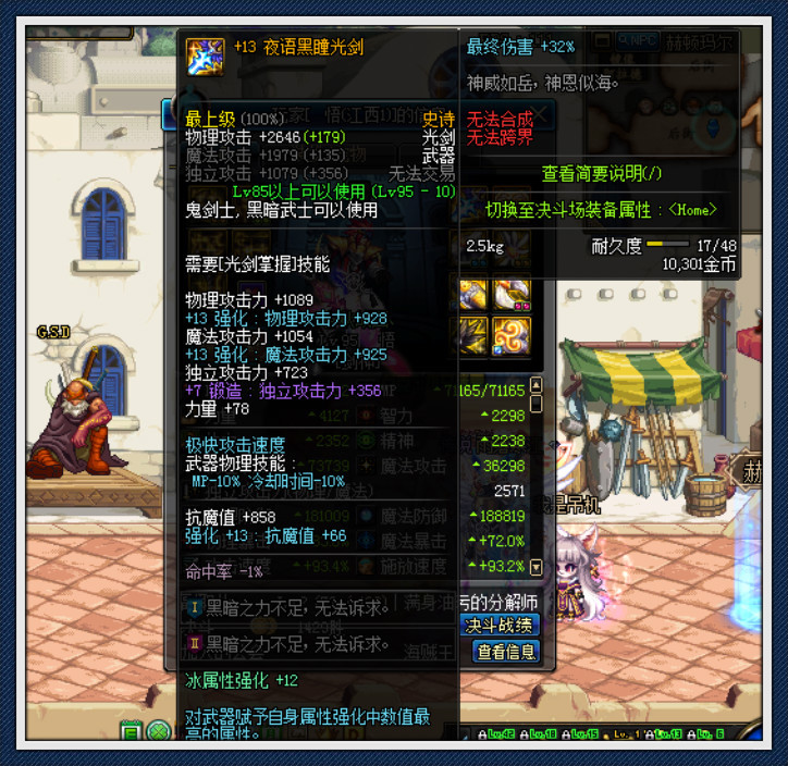 Dnf星之海光剑12和13差距 到底要不要强化13 换号吧
